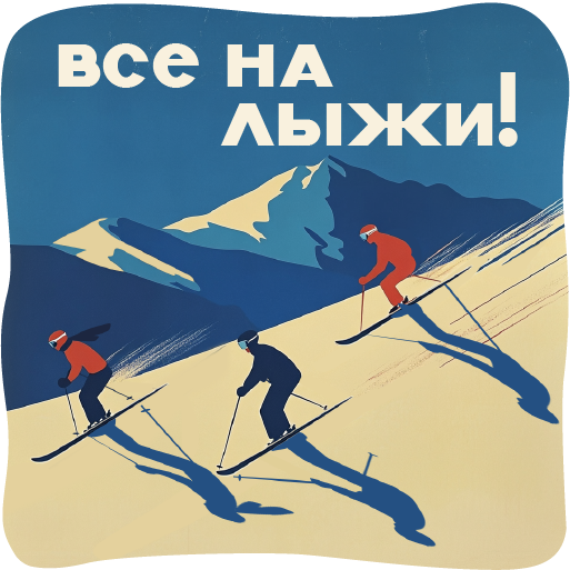 Визуальную концепцию стикеров было принято сделать не только на основе референсов советского плаката, но и в целом в характерной стилистике ретроплакатов лыжных курортов.
